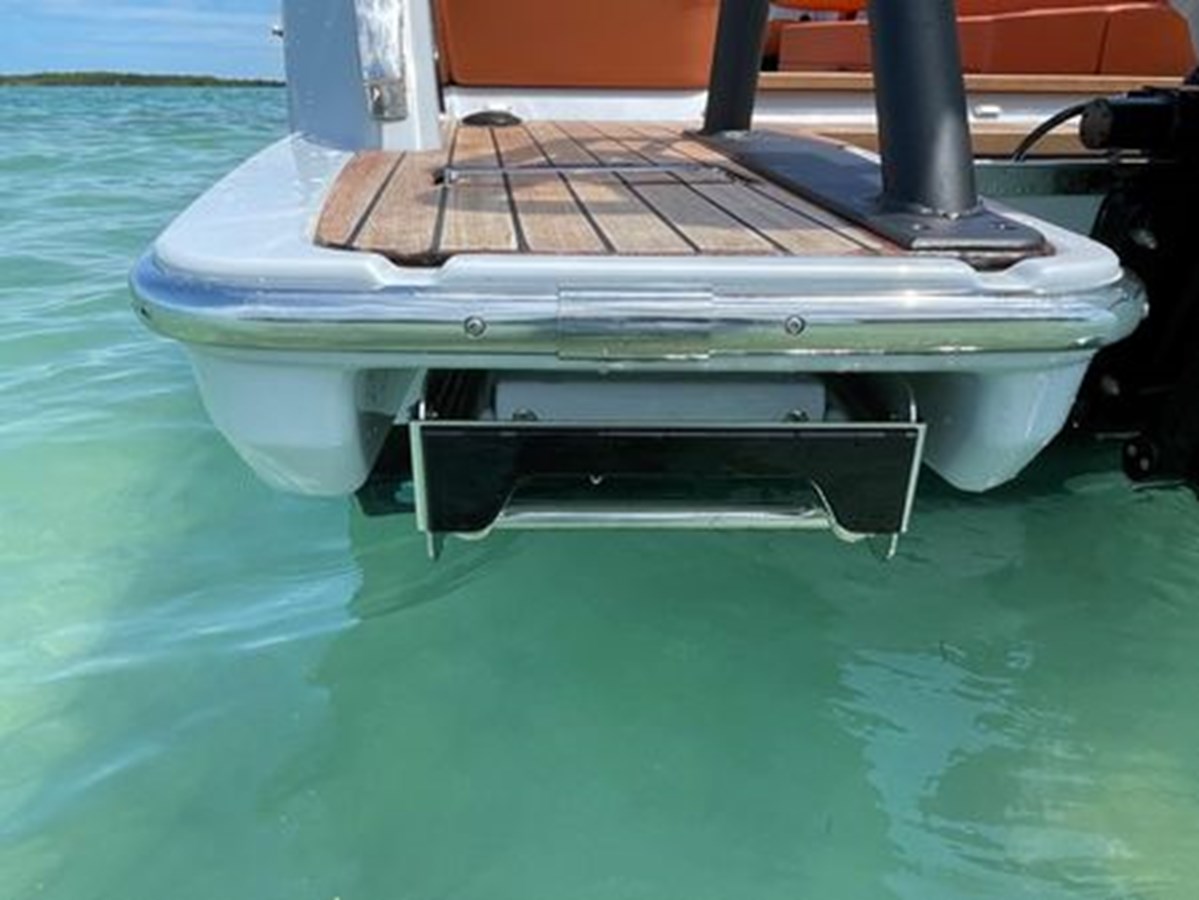 At the stern, the outboard engine is located between two decks: an elegant add-on used as a beach area, both facilitating access on board – which is safer and more practical- and access in and out of the water, assisted by a retractable ladder. Unlimited movement, unlimited freedom.