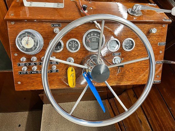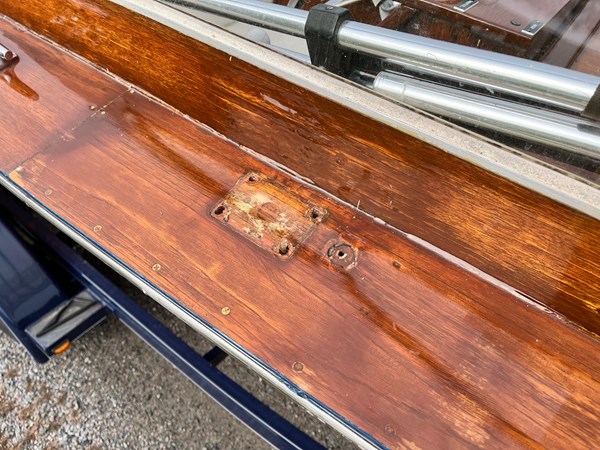 Great useable 25′ Lyman, well suited for big water duty. This one has had significant bottom work already, paint and varnish are great, but you’ll want to address the decks someday to make it really outstanding. Graymarine V-8 based on AMC 327 cubic inch block, 188 hp. Here’s the kicker: 2009 Loadmaster trailer, a $12,000 value new today.