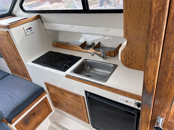 The 2000 Skipjack 262 Flying Bridge is a “West Coast legend” that defies physics by packing the soul of a 30-foot offshore canyon runner into a legally trailerable 8′ 6″ beam. Built with a massive, hand-laid fiberglass layup, it is prized for a 64-square-foot cockpit that offers an unobstructed battlefield for serious bluewater anglers. Unlike many top-heavy small flybridges, the 262 maintains a remarkably low center of gravity and a sharp entry, allowing it to punch through steep chop while keeping the captain high enough to spot breaking fish. It remains the “gold standard” for the weekend warrior who demands a rugged, go-anywhere platform that can be towed to the best bite one day and provide a comfortable overnight stay at the islands the next. Don’t miss the sale on this rugged 26-foot sportfish.