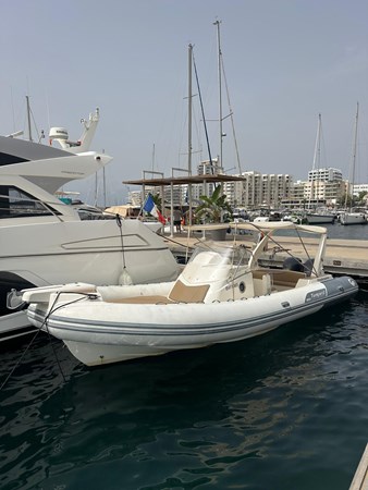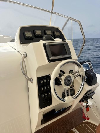 With 8.5m LOA and 3.20m beam, this premium Italian RIB offers outstanding stability and offshore capability (CE Category B). Top speed approx. 45 knots, comfortable cruising at 26–30 knots.