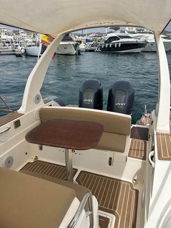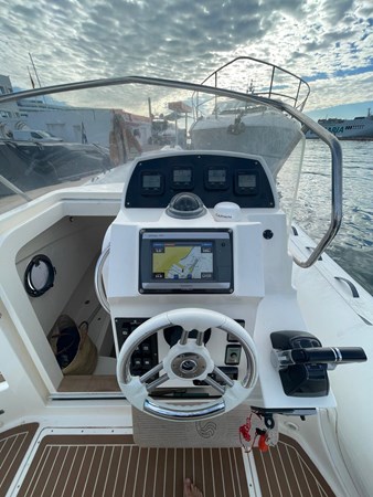 Equipped with Garmin GPS, spacious bow sunbed, aft seating with table, cabin with double berth, swim platforms and bimini structure.