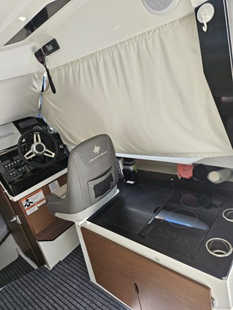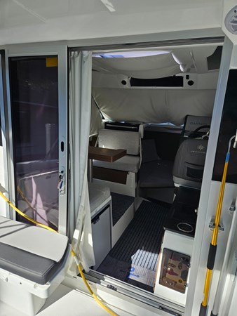 The NC795 S2 cabin cruiser was designed to offer a comfortable battery air-conditioned cabin for many hours of cruising. Its large windows give good visibility, plenty of natural light and great views of the water. There is room to sleep four , a full head and galley with areas to lounge inside and outside of the cabin. This model is a great starter cabin cruiser with many amenities for the family or for those that wish to transition from a day boat to an overnighter. The boat is being sold with a trailer, low hours on the engine. Transferable warranties are available.