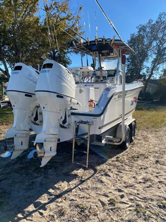2007 Century 27 with updated 2020 Suzuki 200s with 805 hrs “Mister Lucky” is now available. Fuel efficient and well laid out! New axles on Aluminum trailer. Nice Head in console! Upgraded Lowrance electronics. Great boat! Ready to fish! A ideal charter boat