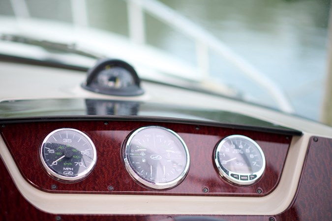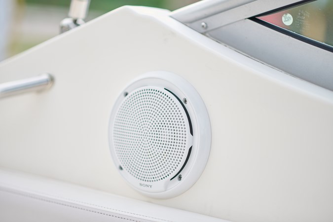 Comfort is enhanced by Dometic air conditioning (10,000 BTU) , shore power with onboard battery charging, and a fully enclosed head with shower. Navigation electronics include a Garmin GPSMAP chartplotter , compass, trim tabs, and a functional helm layout for safe and easy operation.