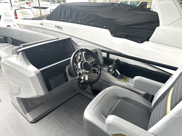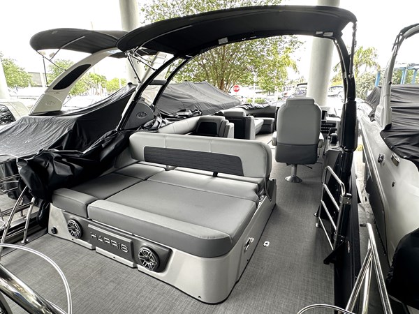 The 2023 Harris Solstice 250 is a premium pontoon boat that combines luxury, performance, and versatility for discerning boaters. With an overall length of 27′ 11″ and a beam of 8′ 6″, it offers ample space for groups, accommodating up to 15 passengers depending on the seating configuration. The Solstice 250 is available in various floor plans, including the CW (Center Walkthrough), CWDH (Center Walkthrough Dual Helm), SL (Single Lounge), SLDH (Single Lounge Dual Helm), and SLEC (Single Lounge Extended Center), allowing owners to choose the layout that best suits their lifestyle. Performance options include triple-tube configurations with diameters of 25″ or 27″, ensuring a thrilling ride whether cruising or towing water sports enthusiasts.