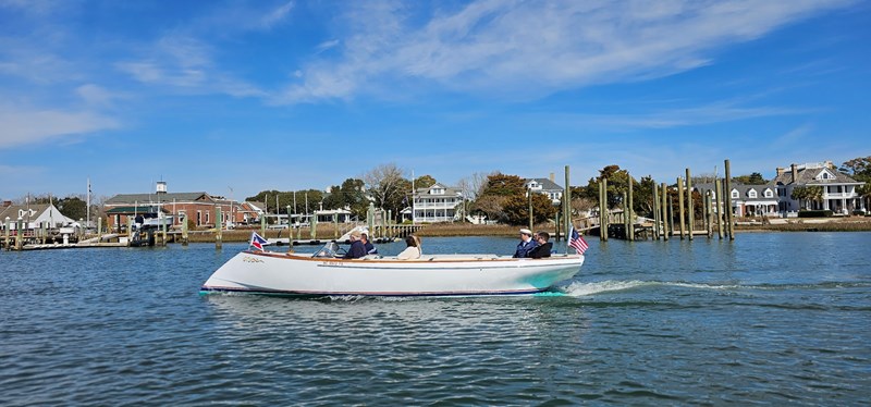 PATIENCE is a tribute to great yacht designers of the pre-war era. The ducktail in the transom is inspired by John H. Wells, who was well known for designing his fast-running commuters for Consolidated, Defoe, and the New York Launch and Engine Co. The transom is inspired by the legendary designer L. Francis Hereshoff while the bow is inspired by WWI battleships.