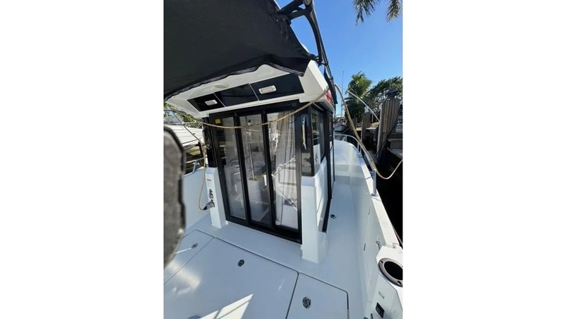 The secure side decks, enclosed wheelhouse, and convertible cockpit layout make it equally suited for early-season runs or autumn getaways. Equipped with a Yamaha 250, Garmin navigation, Sleipner bow thruster, and Zipwake trim system, it performs with total confidence on the water.