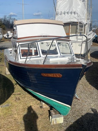 Well maintained Hubert Johnson Sea Skiff that has been in Barnegat Bay all her life. Constructed with mahogany over oak and is single screw. Was owned by a Dr from Toms River who maintained her at deRouvilles Boat Shop, was named Rip Tide, and was painted white with light blue decks. She has a unique hard top design with a flybridge and was purchased by a former boat yard owner in Seaside Heights who fixed her up and has been shown in the local Antique and Classic Boat Show Barnegat Bay Chapter since 2009. She is now owned by an experienced classic boat owner who has continued to upgrade her with a with re-built transom over the winter in 2024. Come check out this gem.