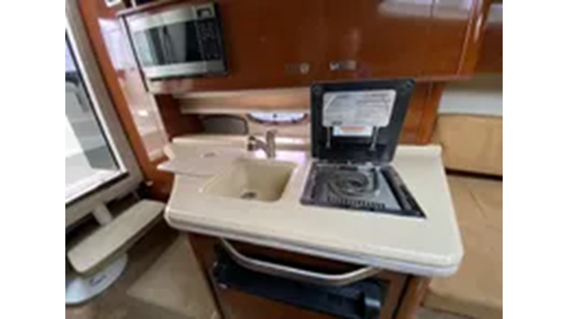 The sleek, contemporary lines of the 280 Sundancer make it a standout in any marina, but this express cruiser is not meant to sit at the dock. A dynamic deep V-hull provides a smooth ride in any conditions, while the stylish interior promises comfortable overnight stays.
