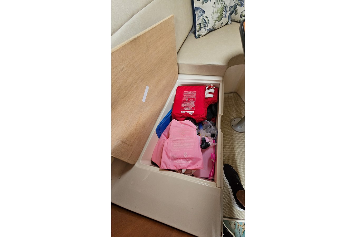 Cushions and cabin interior reupholstered in 2022 are in great condition. Most outside cushions are easily removed and stored inside boat for extended durability.