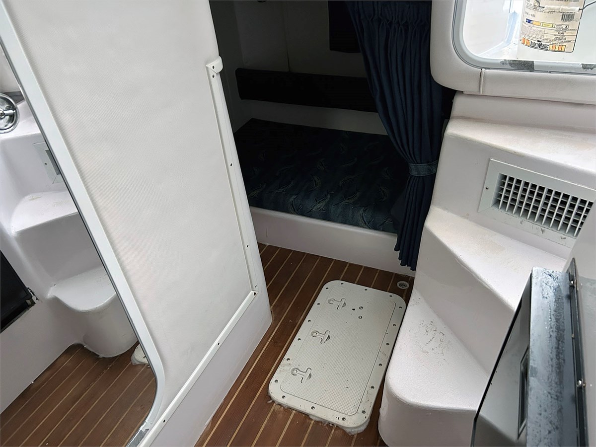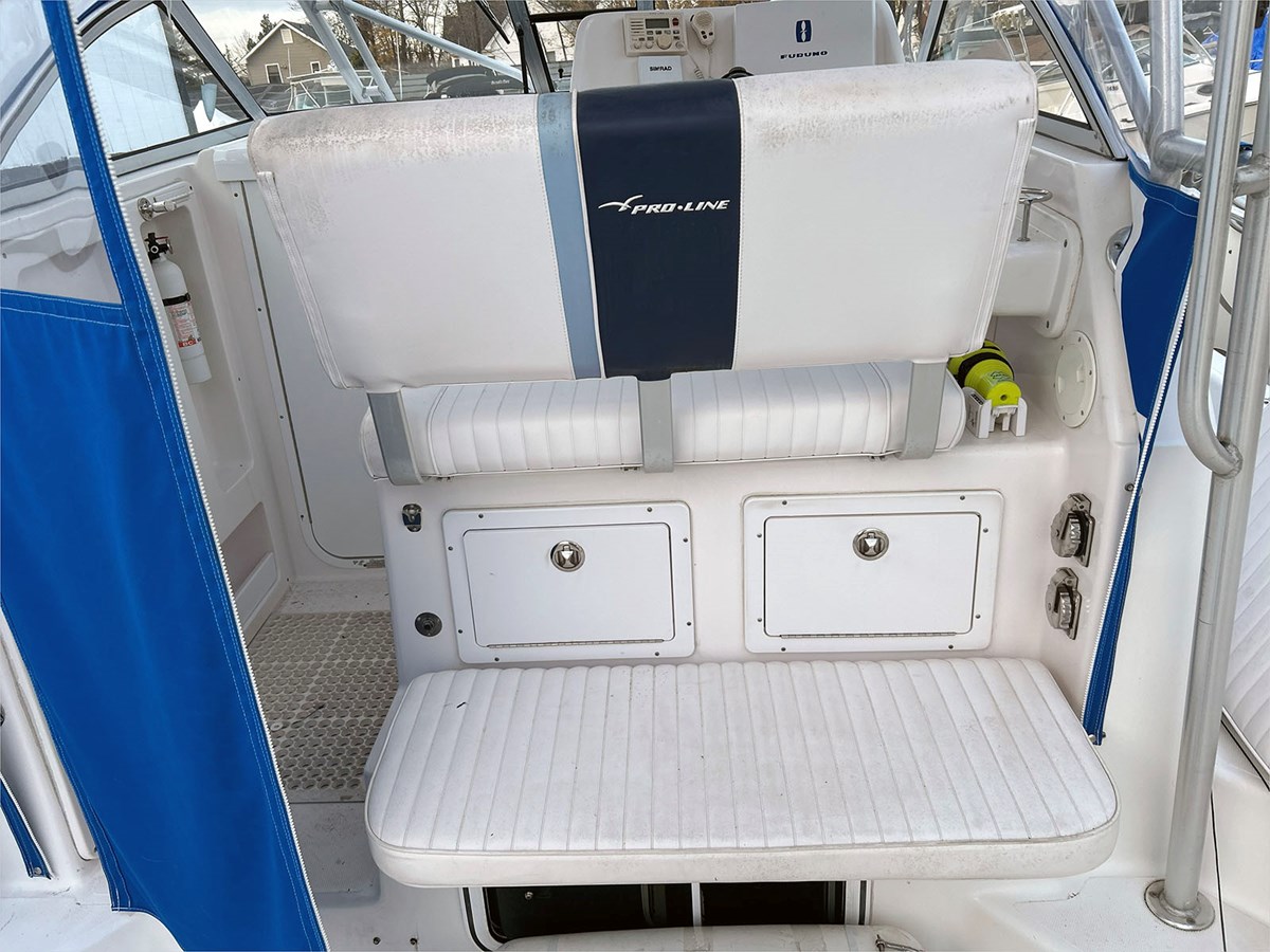 The 2004 Pro-Line 30 Walkaround serves as a rugged bridge between dedicated offshore angling and comfortable family cruising. The 30 Walk is defined by its deep, secure recessed walkways that provide true 360-degree fishability while maintaining a surprisingly airy cabin that sleeps four. Built with Pro-Line’s wood-free F.I.S.T. (Fiberglass Integrated Structural Technology) and a massive 10’10” beam, it remains one of the largest vessels in its class. Whether unitizing its open deck and fishboxes for angling or the full-service galley for a weekend away, this model remains a top-tier “bang-for-your-buck” choice for boaters who refuse to compromise between hard-core utility and live-aboard luxury. Don’t miss the sale on this 30-foot walkaround Pro-Line.