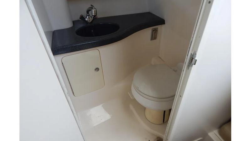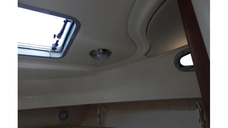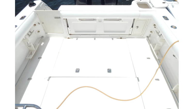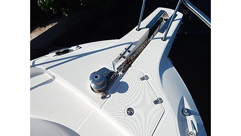 The unsinkable legend that is Boston Whaler continues with the 305 Conquest, a heavily built 30-foot Express designed for serious anglers with a yen for quality. The 305 is a refinement of the popular 295 Conquest (1999–2003) with a larger cockpit, and updated interior, and a redesigned helm and transom. The Conquest’s list of fishing features begins with plenty of rod storage (under the gunwales and inside the cabin) and includes a 24-gallon transom livewell, cockpit rigging station, two insulated in-deck fish boxes with pump-outs, and an enormous hatch in the sole that provides unprecedented access to the bilge. Visibility from the 305’s raised bridge deck is excellent, and a comfortable lounge seat across from the helm seats two guests. Below, the Conquest sleeps four adults—two in the forward V-berth and two more in the mid cabin double berth. Cherrywood cabinets and faux granite counters highlight the galley. Additional features include a bow pulpit, wide side decks, and a hideaway bench seat that pulls out from the transom. Note that a hardtop is standard. No lightweight, twin outboards will deliver a top speed of 32–33 k