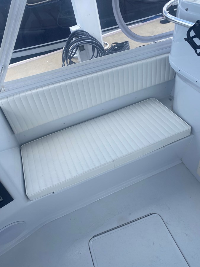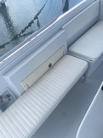 Bench seats Port and starboard with custom upholstered cushions