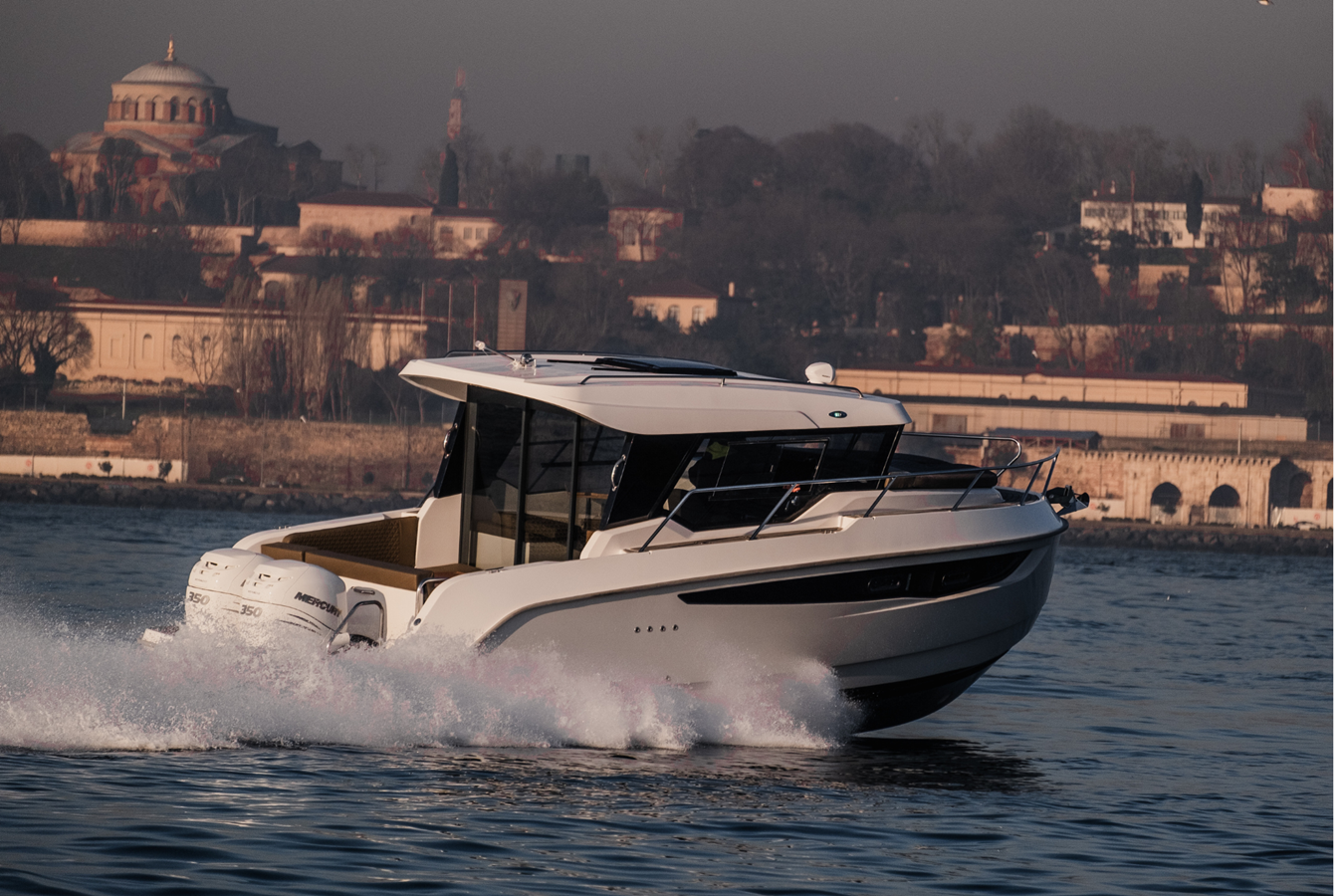 Twin MERCURY @ 350 hp each w/ a max speed of 50 knots!
