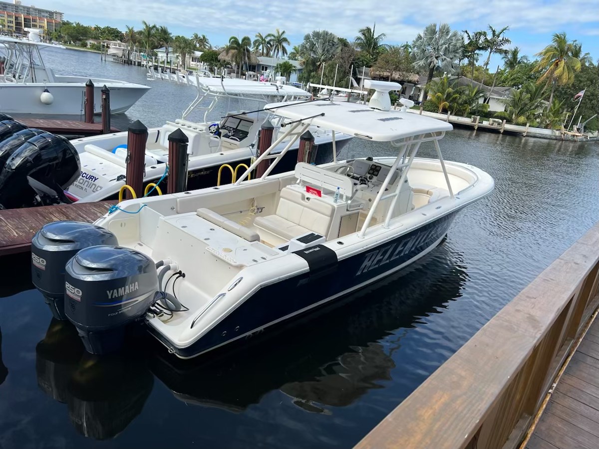 Presenting the versatile 2009 31′ Pursuit S-310, a rugged offshore performer designed to conquer rough waters and high seas. Above deck, it showcases refined features, including an extended hardtop providing weather protection from the forward console seat to well aft of the helm. The bow seating area offers both comfort and functionality with recessed rails for security and ample storage beneath the benches. Enjoy sunbathing with the optional bow filler cushion or transform the area into a spacious dinette with the removable teak tabletop for waterfront dining. Inside the console, discover a convenient stand-up head compartment with locking storage for valuables. The stern seating arrangement features forward and aft-facing benches, ideal for casual conversations or fishing adventures. Additional amenities include a spacious insulated cooler concealed beneath the forward-facing seat and a stainless steel refrigerator tucked beneath the helm seating. Whether cruising or angling, the Pursuit S-310 delivers unparalleled comfort and performance for all your on-water pursuits.