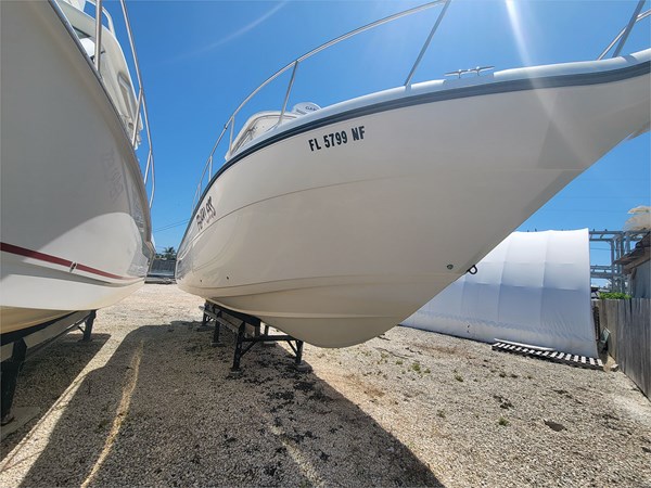 This boat has been sitting in rack storage for about a year. The engines are reportedly running. It will need seasonal prep, new batteries, and cleaning.