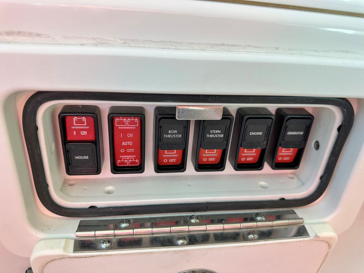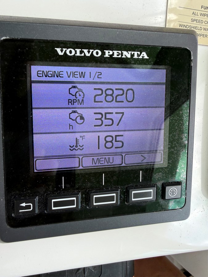 Lightly used and exceptionally maintained, BELLA FAMIGLIA is an exceptional example of her class. In addition to her many standard winning attributes, she’s been outfitted with numerous optional upgrades: VOLVO 435hp electronic diesel, Zipwake automatic trim tabs, (2) zone reverse-cycle A/C system, 7.5 kW Onan-Cummins genset, a QUICK electric / mechanical anchor windlass, a SURESHADE electric cockpit awning and more! Electronics suite includes GARMIN navigation with AIS, digital HD radar & autopilot, a FLIR 232 night vision camera and a kickin’ Bluetooth stereo system.