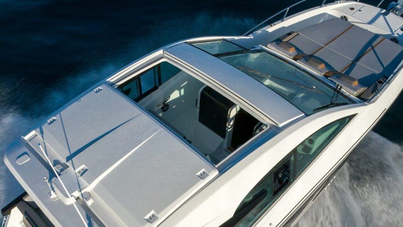 The GT32 meets the challenge of combining the spirit of a large open boat with that of a spacious hardtop offering all the comfort of an express cruiser.