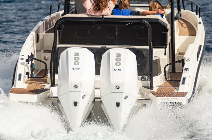The 2025 Navan S30 is a premium center console boat designed for both performance and luxury, ideal for coastal cruising and day adventures. With an overall length of 33′ 7″ and a beam of 9′ 10″, it offers ample space for up to 12 passengers. Powered by twin Mercury 300XL JPO 4-Stroke outboard engines, the S30 delivers impressive performance. The boat features a patented twin-step T-Step Hull for exceptional handling and stability. Onboard amenities include a fully equipped exterior prep center with an electric grill, sink, and inverter, a 12-volt air conditioning system with a dedicated battery bank, and a stand-up compartment with a shower and sink. The interior offers a double berth with natural LED lighting, providing comfort for overnight stays. With its combination of performance, comfort, and innovative design, the Navan S30 is well suited for those seeking a versatile and luxurious boating experience.