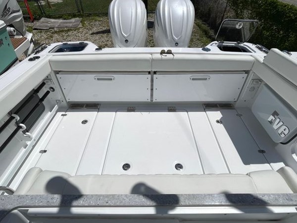 Measuring 31 feet and 6 inches, with a robust 10-foot and 4-inch beam, the Everglades 315cc proudly stands as a testament to power, agility, and unmatched capability on the water. Driven by dual 400 horsepower V10 Mercury engines, this vessel unleashes its prowess with a cruise speed of 43.6 MPH—a symphony of speed and stability on open waters. When the call for exhilaration arises, the wide-open throttle speed of 56.3 MPH will have you embracing the wind and the endless horizon ahead.