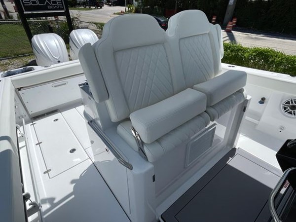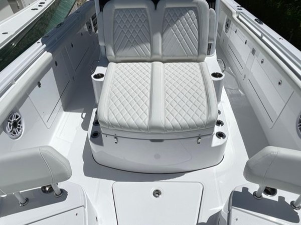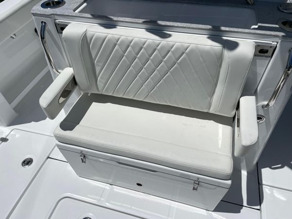 Standard on the Everglades 315cc is a meticulously designed mezzanine seat and cooler combination—your perfect companions for relishing the sunsets or sharing laughter with friends. Looking to augment your experience? Add the rigging and tackle station, a fusion of utility and luxury, featuring the mezzanine seating and cooler solution that remains at your service.