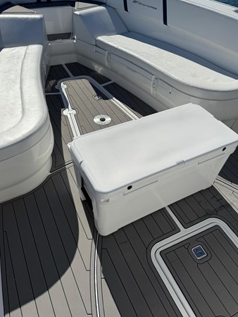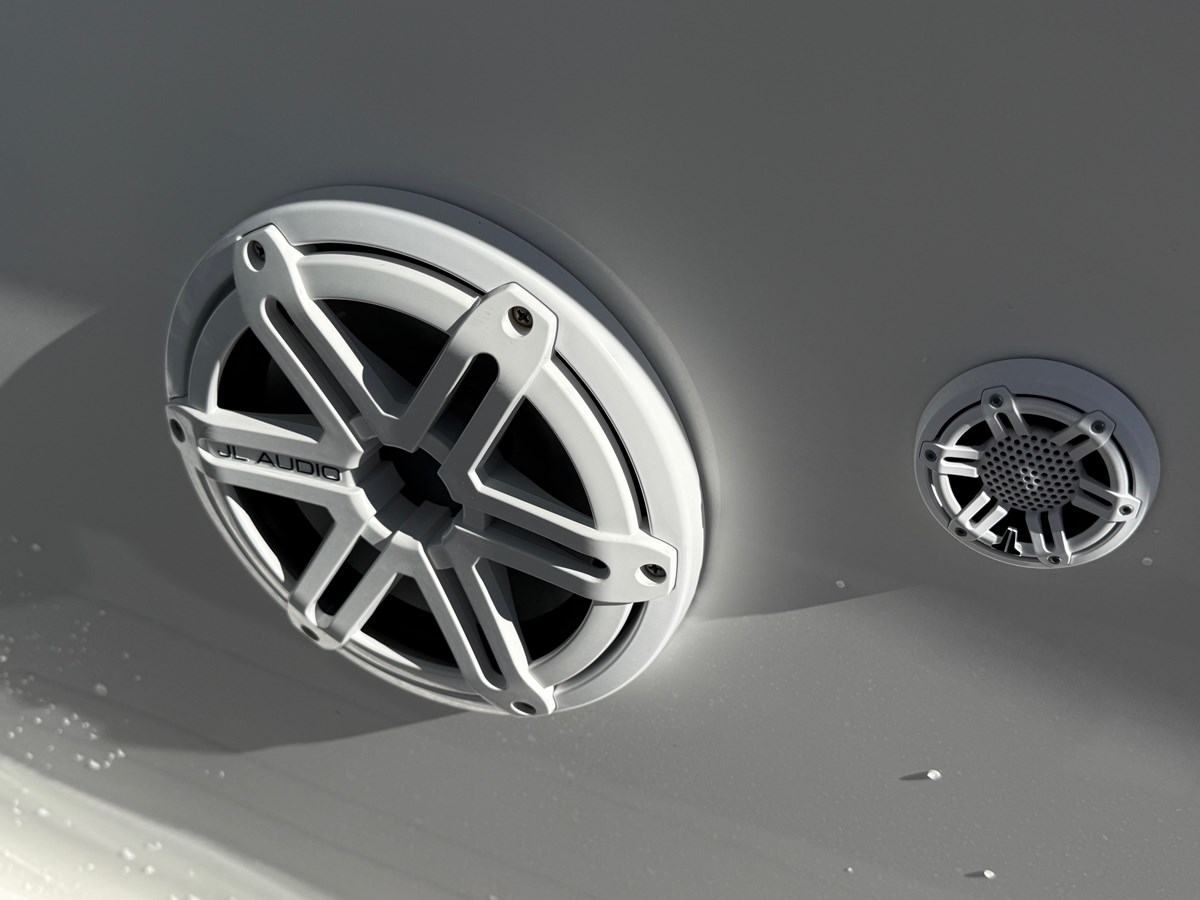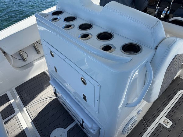 Be ready to be blown away by her speeds, efficiency, limited bow rise, dry ride (thanks to the patented Integrated Spray Reduction design), and incredibly comfortable ride in calm to grueling sea conditions. She has the widest, best in class beam of 11′ coupled with her patented double step hull.