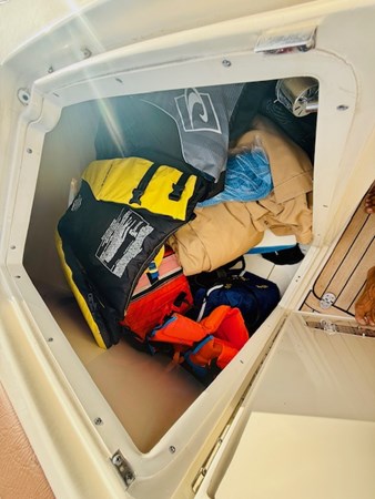 Gorgeous styling, meticulous detailing, and a roomy deck layout combine in the Chris Craft 32 Launch, a feature-packed luxury bowrider whose classic lines are unmatched by anything in her class. Big bowriders are popular these days, and the 12-person seating capacity of the 32 Launch allows owners to bring the entire family for an afternoon of fun. Stepping aboard from the extended teak swim platform, the cockpit features Ushaped lounge seating aft, concealed slide-out refrigerator, and a folding teak table that stows under the engine hatch. The starboard console houses a small change room, and the portside console houses a molded head compartment with sink and hand-held shower. A hatch ahead of the driver opens into a compact cabin with a slender double bed. Under the cockpit sole and running forward from the helm is a cavernous ski/wakeboard/storage locker that reaches through to the bow. As it is with all late model Chris Crafts, meticulous fit and finish and eye-catching brightwork add to the visual stimulus of the 32 Launch. Note tumblehome transom. Built on a deep-V hull with moderate beam, Mercury 350hp gas engines (with Joystick controls) reach a top speed of over 40 knots.