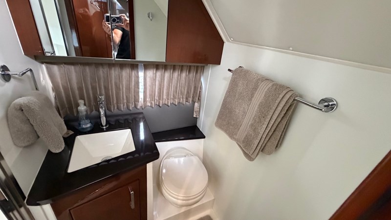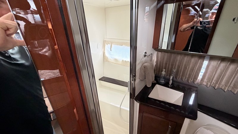 The boat’s systems are clean, organized, and well laid-out, with both the AC and DC distribution panels looking factory-fresh. This is the rare combination of luxury, sport performance, and sensible layout that Carver is known for.