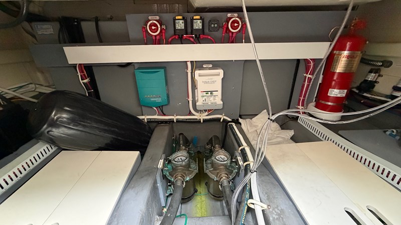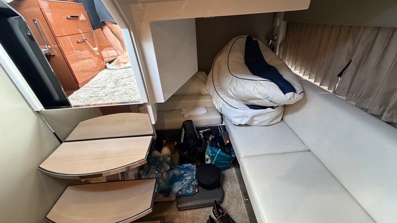 This boat brings together the modern helm technology of a much larger yacht—Skyhook, joystick, digital controls, Garmin glass cockpit—with the ease of ownership of a 34-footer. The condition of the electrical panels and helm shows care, organization, and pride. It’s a boat you can take out tomorrow with zero worry.