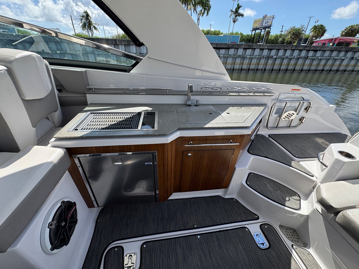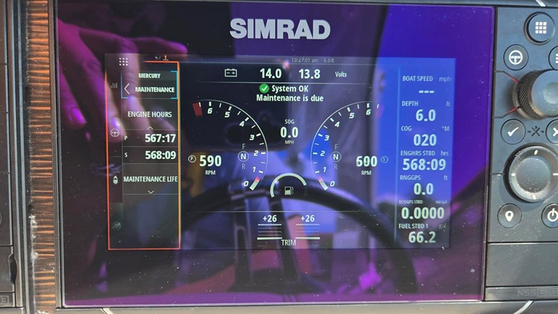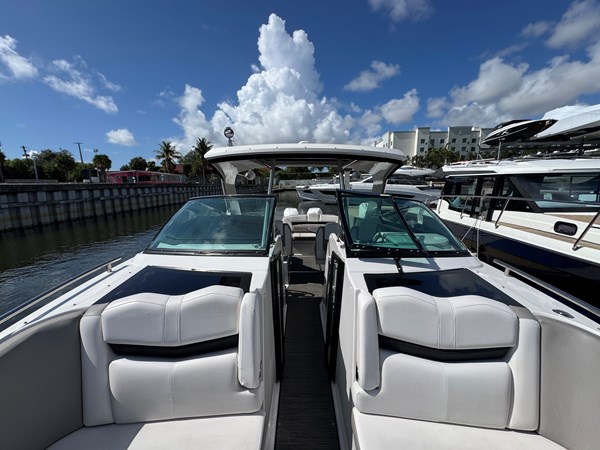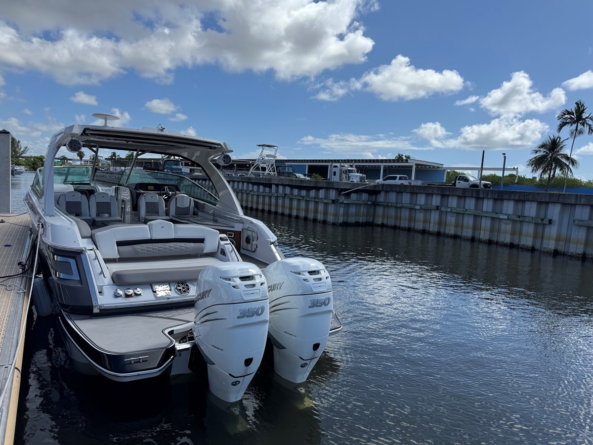 We ordered from the Factory with Custom Graphics & Great Color combination on both the Boat & Engines. Also shows off a pair of 35 0 Verado engines . A very Versatile Boat, Go out with 16 friends comfortably to party on the water or Sand bars.