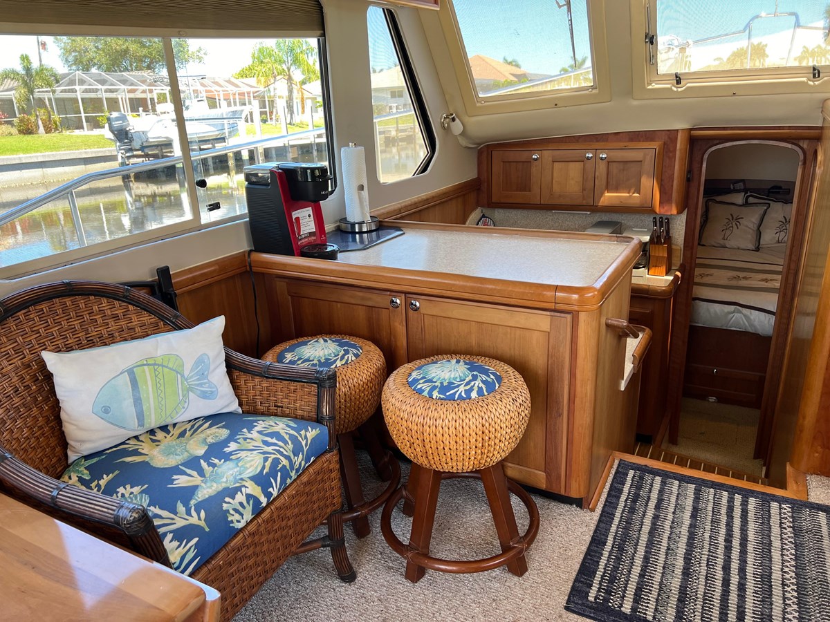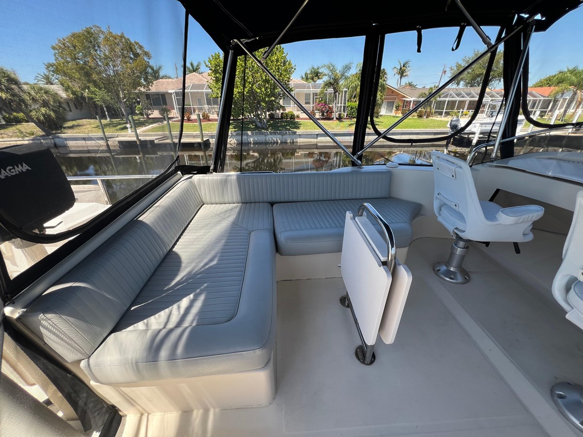 This 2005 34ft Mainship will not disappoint!! She comes with all the comforts and classic style that Mainship is known for. With windows all around the salon is filled with natural light. You step down into a full galley kitchen with a two burner propane cooktop, refrigerator and convection microwave oven. The berth is forward with a tapered queen size bed and storage throughout. The head offers a large walk in shower and entrance doors from the berth and galley. The couch pulls out into a full size bed for additional sleeping. She is equipped with a lower helm and the bridge helm with a table and seating all around. With her Yanmar diesel engine, a Kohler generator and a Pennant 10ft sailing dinghy and davits she is ready for your next big adventure. The Mainship 34 is known for being a perfect vessel to do the Loop in. The owner has spared no expense to keep this vessel looking and running well. She is a Must See so call today 941-662-7949 to schedule an appointment!! Here are just a few of her other features and updates: