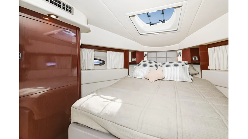 Everything about this beauty is designed with extended voyages in mind, including its outstanding ride and sea-keeping abilities, open and airy cabin, and two well-appointed staterooms. While the captain takes command at the helm, guests will enjoy breathtaking views from the generous bridge seating. In comfort as well as style, the 36 Sedan Bridge will take you to your destination.