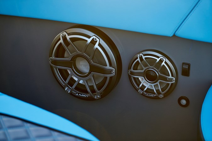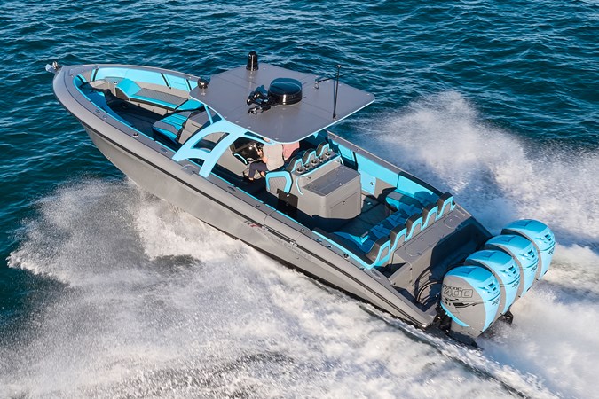 Cruise in style in this Luxurious Miami-made performance center console! This beautiful boat is detailed with a crisp blue and black color contrast, that will have you turning heads on the water. With a top speed of 80 mph, you will have a hard time backing off the throttles because of the thrills.