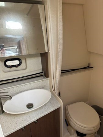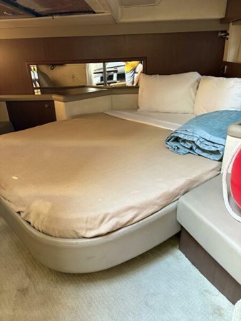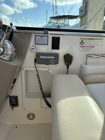The innovative design creates larger cockpit, stowage and cabin space. Head, Refrigerator, Air Conditioning, large dining table and Galley in the cabin and a grill, wet bar and refrigerator and dining table on the party deck. Family and friends will enjoy the sun with new cushions on the bow and will compliment you on your re-finished teak deck. The large Bimini Top will provide shade for the entire aft deck seating area.