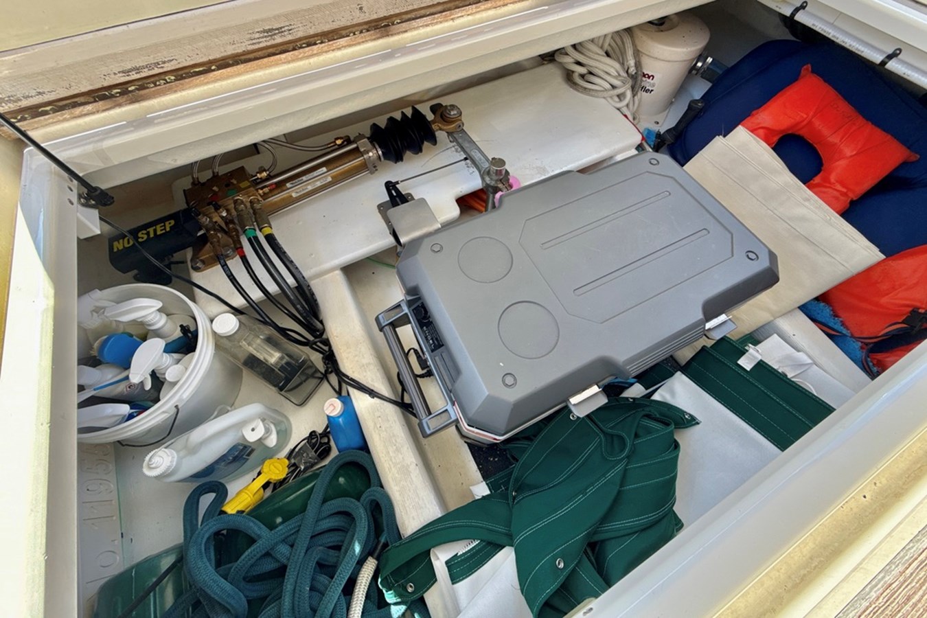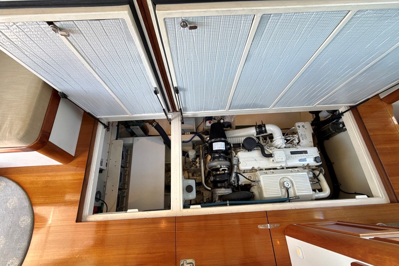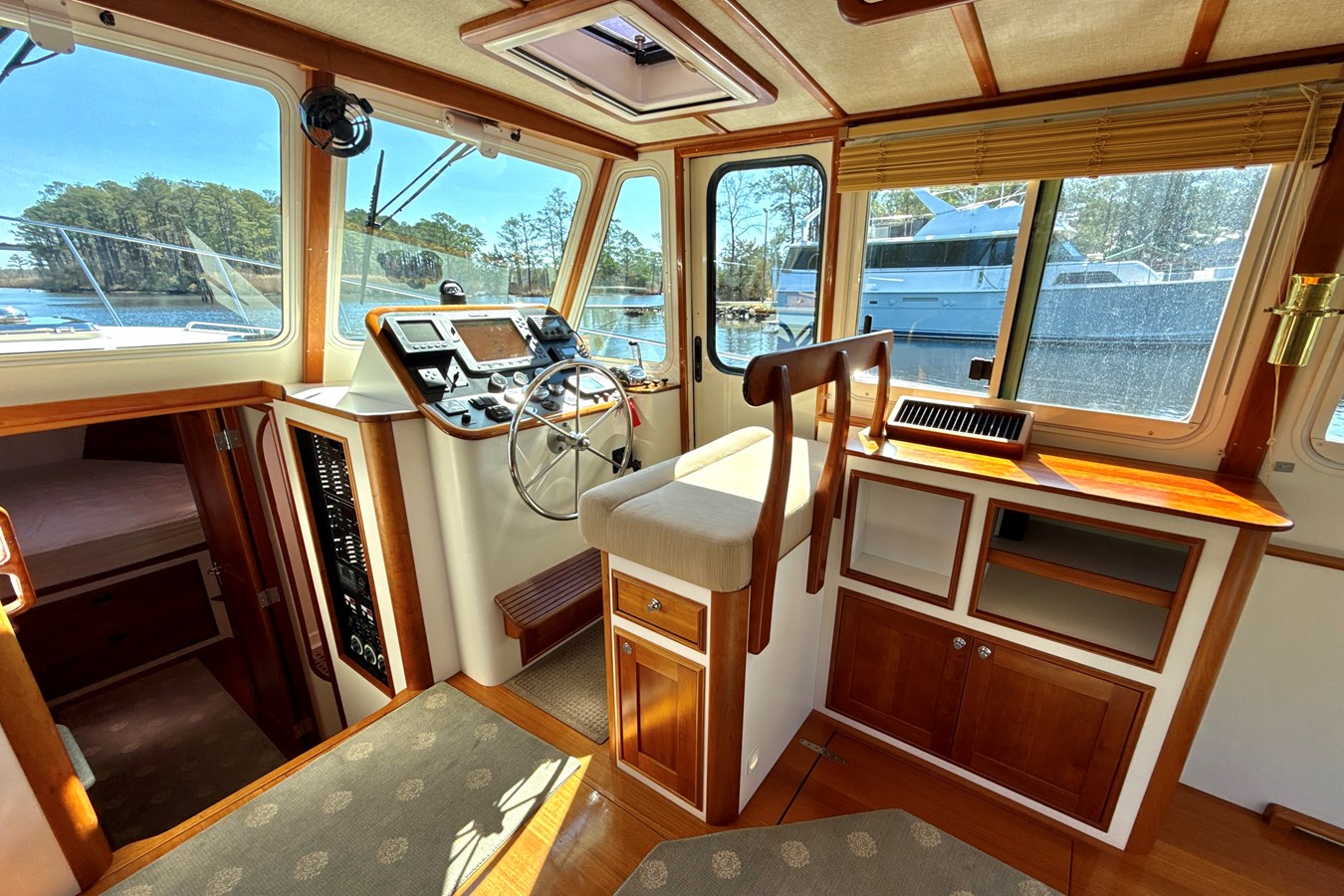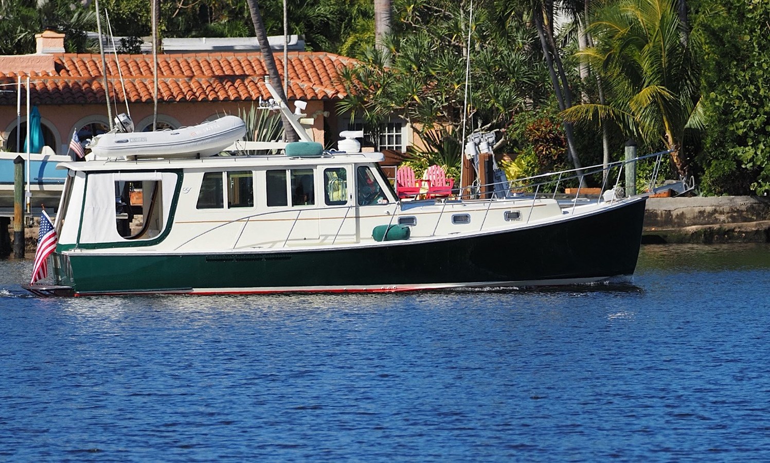 SANTORINI is a Duffy 37 hull completed by Campbell Custom Yachts as an “Atlantic 37”. She’s a stylish and comfortable traditional Downeast yacht with a modern planing hull and full keel. It features a timeless layout with custom berth, full head, formidable galley, and saloon atop a single Cummins diesel engine.
