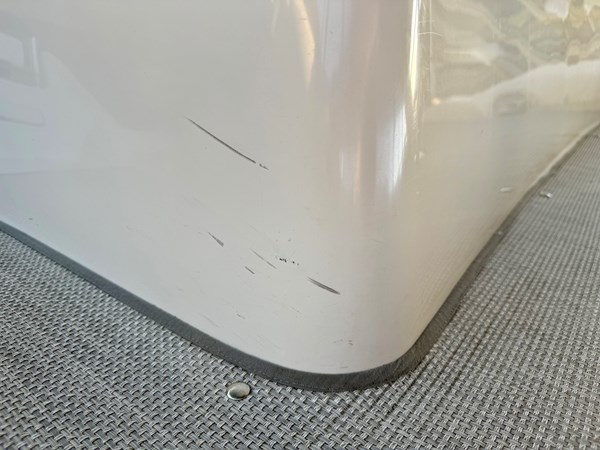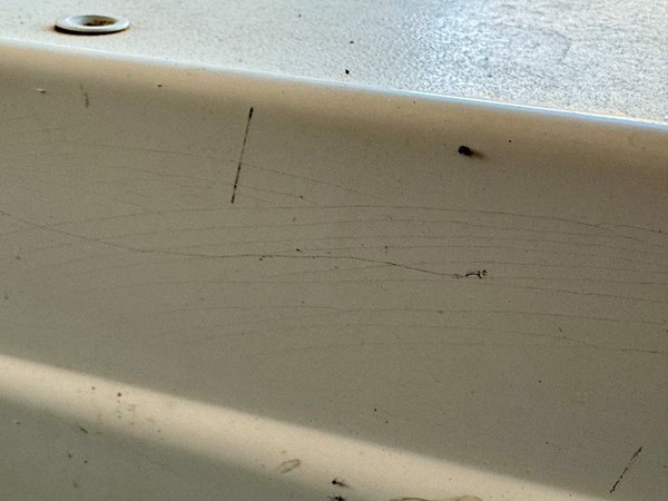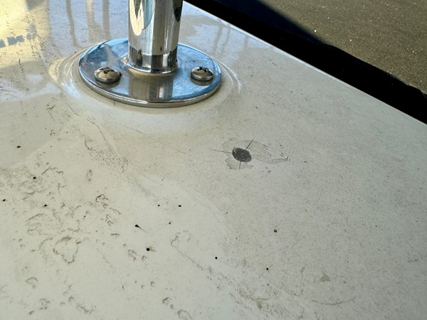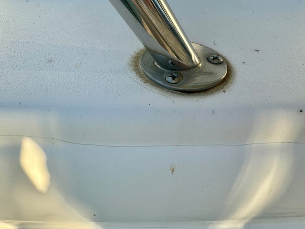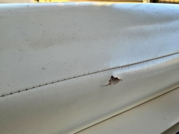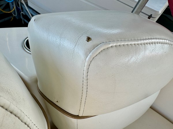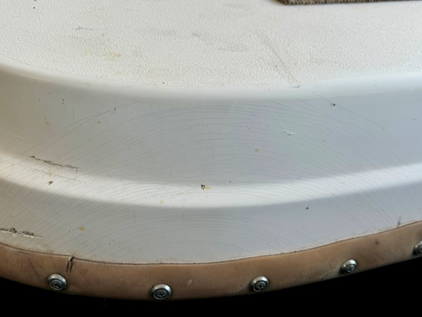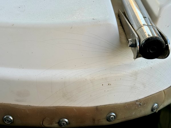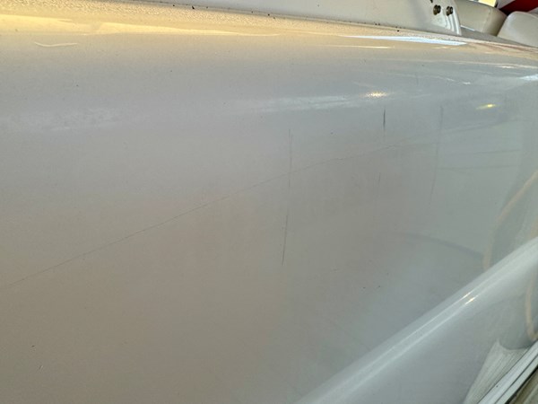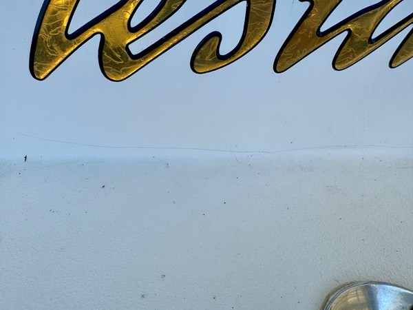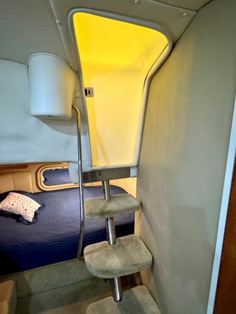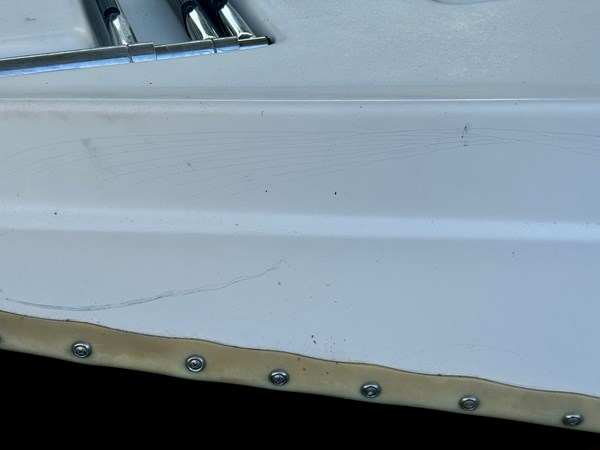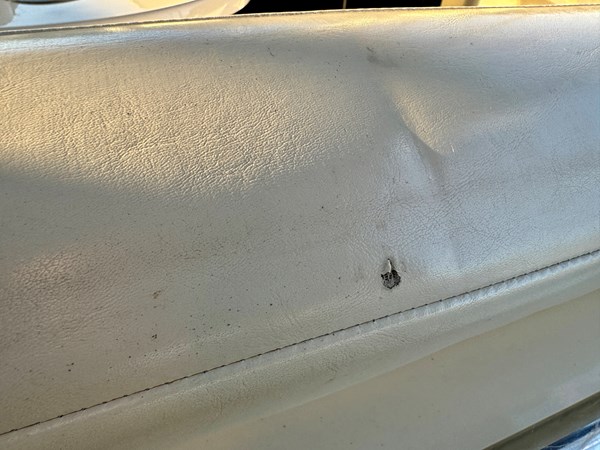 This Fresh Water 2004 Rinker Fiesta Vee 342 Cabin Cruiser For Sale on Norris Lake Tennessee is powered by twin Mercruiser 350MAG MPI V8 Inboard/Outboard Engines with Bravo III Dual Prop Outdrives and a Kohler Generator in a soundbox and features sleeping for 5-6 in a v-berth, convertible dinette, and a mid cabin with a roomy head that has a separate shower stall, an electric flush head, and a vanity sink. The cabin’s 6′ 10” of headroom is heated and cooled with a marine air conditioning unit with reverse cycle heat while other creature comforts are provided via the galley’s ac/dc refrigerator, dual electric range cooktop, an integrated microwave, coffee maker, and sink with a 24” LED smart roku tv integrated into a cabinet for rainy days or cloudy evenings. In the cockpit you’ll find another ac/dc fridge as well as an under-counter freezer, integrated blender and waste bin. Comfort is assisted in the cockpit by an overhead dual bimini top that includes an isenglass/camper canvas enclosure, woven vinyl snap-in flooring is underfoot, and a removable lounge table, stereo, and plenty of stainless cupholders throughout allow for easy entertaining. At the helm you’ll find a double wide helm seat with driver bolster, a depth/fish finder/sonar, gps chartplotter/radar, vhf radio, controls for a remote spotlight, windlass anchor, hydraulic trim tabs with an indicator, and much more. Other highlights include a central vacuum system, a bow sunpad cushion, an extended swim platform with swim boarding ladder, and a hot/cold transom shower. The covered slip on Norris Lake Tennessee is transferable.