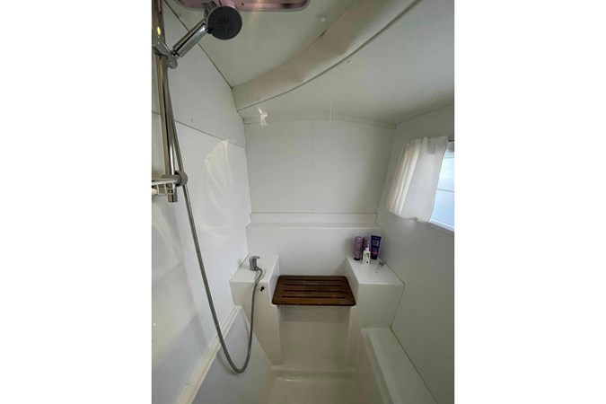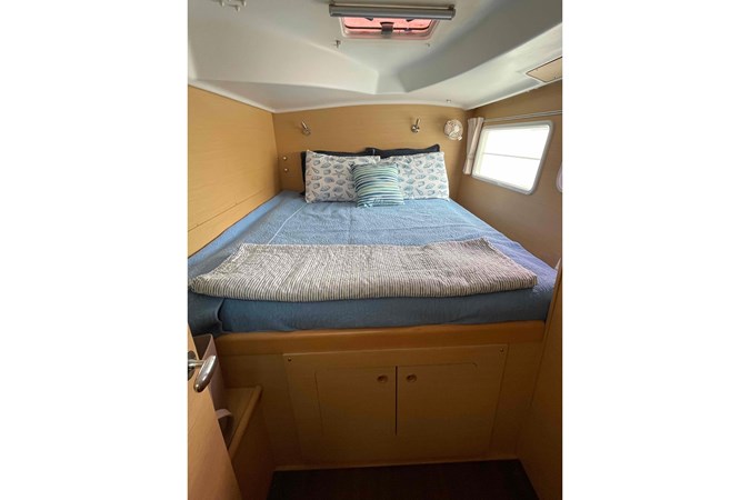 The Lagoon 380 has huge interior volume for a 38 footer. The panoramic salon and the galley connect directly with the cockpit. Seated around the salon table, while at the helm, or relaxing in the cockpit, everyone is part of the activities onboard. The owners version has 3 cabins with queen size berths and 2 heads, one on each side, with the starboard hull entirely dedicated to the owner’s suite, including a large fully enclosed shower. There are hanging closets and shelves throughout the cabin areas as well as large fixed panoramic windows in each cabin.