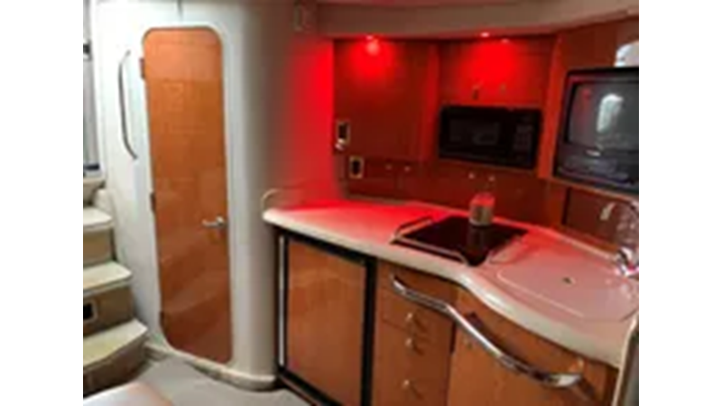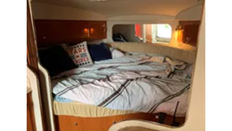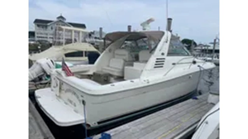 2001 Sea Ray 340 Amberjack. Features Twin fresh water cooled MerCruiser 8.1-litre Horizon 370-hp Gas Engine’s with 1008 original hours. Notable features include: Air-Conditioning & Heat, Head (Vacuflush) w/Vanity/Sink/Shower, Windlass Anchor w/Forward Pedal-Controls, Westerbeke 7-kw Generator (752-Hours).