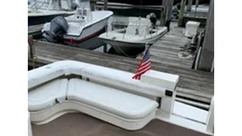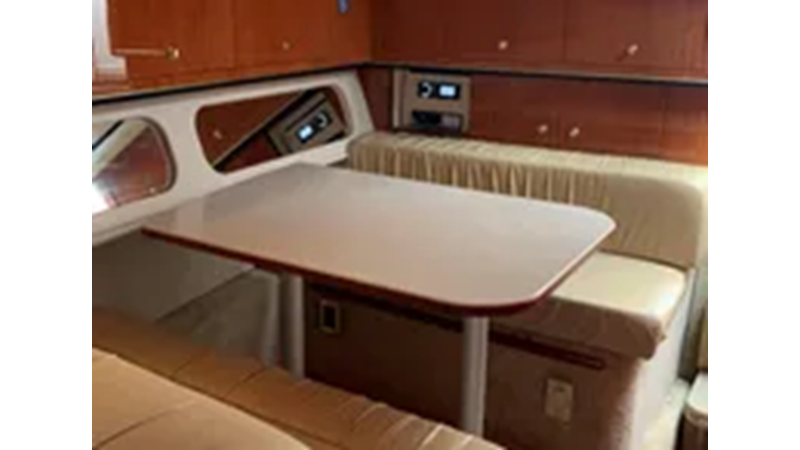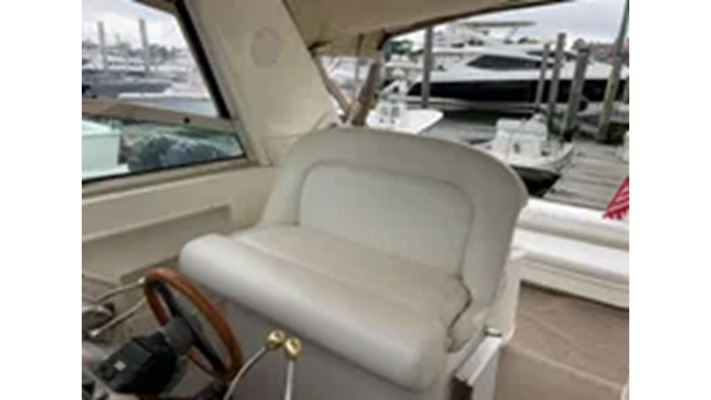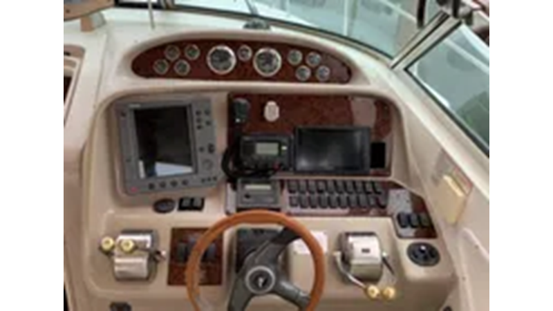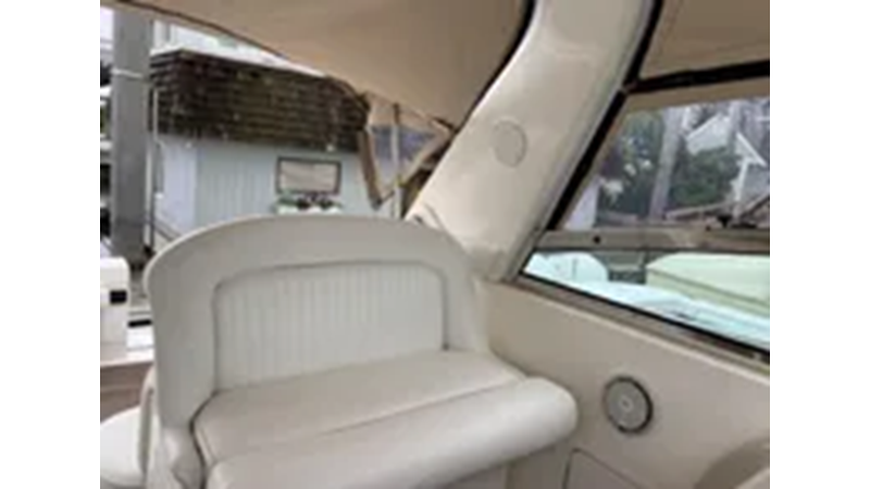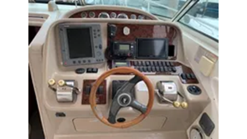 The Sea Ray 340 Amberjack, perfect for fishing or cruising, features a wide beam and large cockpit. Several passengers can sit comfortably in the cockpit during cruising.