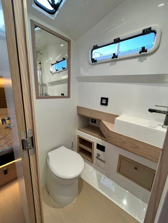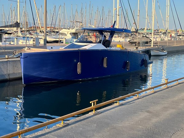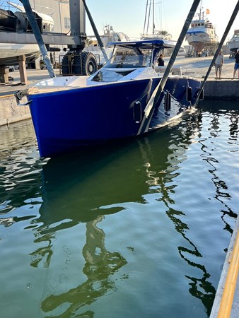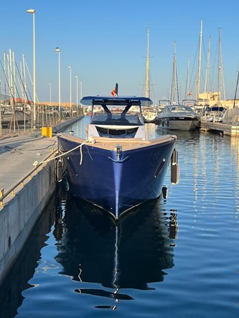 Excellent, spacious exterior homologated for 12 passengers, with 4 berth sleeping arrangement with 1 double and 1 twin bed. Toilet and separate shower. Large storage garage for toys. Unique bow sunpad ideal for lounging in complete safety, even under way.