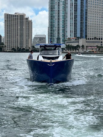 TESORO Yachts debuts their T38 Outboard for the first time at the Miami Beach Boat Show 2023. With both inboard and outboard configurations.The T38 is a modern looking dayboat whilst maintaining the key values of the brand – safe, fast and comfortable navigation with a unique style & personality, perfect for cruising and day boating.