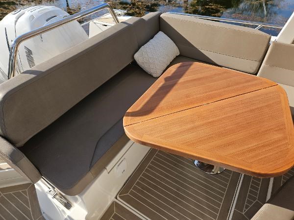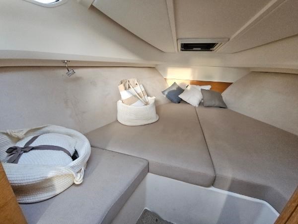 If you are looking for a versatile family boat check out this 2020 Numbus Weekender 9. It has everything you need for a great day at the sandbar or beach or a cruise to the keys. Powered with a single Mercury Verado 350 this boat is agile and efficient in long cruises and handles a moderate chop with ease. The Zipwake trim system will trim the boat for maximum efficiency alleviating the guess work. The helm is simple in design and feature 2 large Simrad screens with charts, radar, sonar, engine displays and audio controls. Adjacent to the helm is a wet bar area with sink cook top refrigerator as well as ample storage. The aft seating area has a table that folds away and the seating area converts to a sun lounge. There is abundant storage throughout the cockpit area. The cabin features a large day bed, storage cabinet and head compartment with sink and vanity.