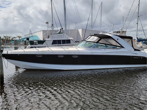 The 2005 Formula 400 SS epitomizes high-performance luxury on the water, blending raw power and sleek design in one formidable express cruiser. With its FAS3Tech hull offering a stable and dry ride, this 40-foot marvel delivers top-tier agility and a thrilling top speed, making it equally exhilarating for day cruising or extended weekends. Beneath the flawlessly finish lies a meticulously crafted cockpit and cabin, featuring plush Ultraleather lounges, a fully equipped galley, reverse-cycle air conditioning, and advanced navigation electronics. The 400 SS ensures effortless handling and convenience, while the expansive swim platform, U-shaped aft lounge, and luxurious cabin accommodations provide an uncompromising blend of performance and comfort that definitively sets the Formula 400 SS apart from other vessels in its class. Don’t miss the sale on this 40-foot Performance Express Cruiser.