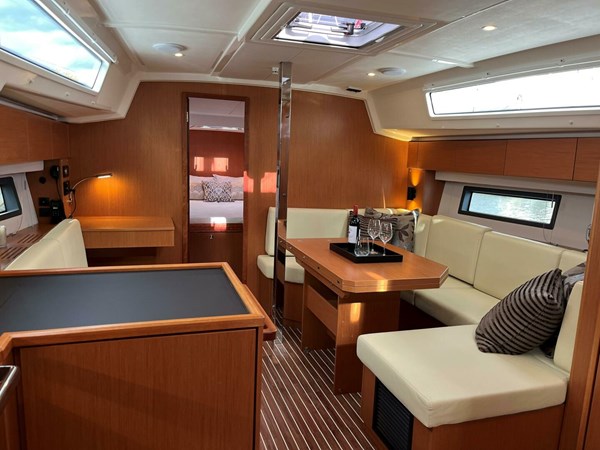 On deck, the Bavaria C42 is outfitted for ease of handling and superior performance, with a furling mainsail, electric winches, and a B&G navigation system, including a Zeus³S chart plotter and autopilot. The teak-finished cockpit and bathing platform, combined with an electric anchor windlass, make for easy and enjoyable sailing.