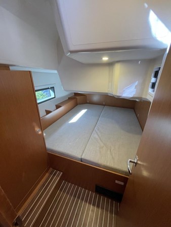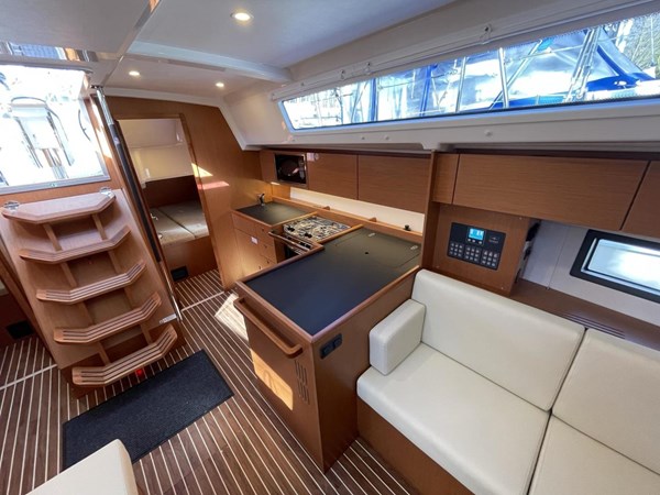 This model offers a well-appointed 3-cabin, 2-head layout, including a master cabin with a double berth and ensuite head. The twin aft cabins also feature double berths, ensuring comfort for guests. The salon, finished in luxurious Mahogany and Ocean Line flooring, is bright and airy, thanks to large hull windows and premium “Opus” artificial leather upholstery.
