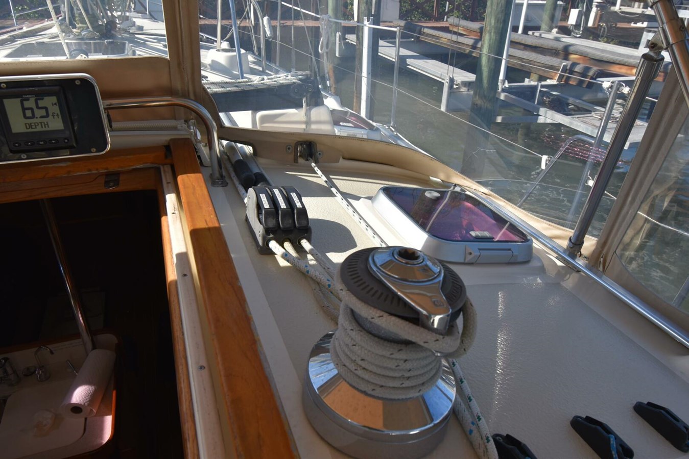 With a watertight collision bulkhead forward, water-tight rudder dam, smart charging and fuel management systems, and a convertible cutter rig for handling any sailing conditions, she is well equipped to take care of owners no matter where they may call their cruising grounds.