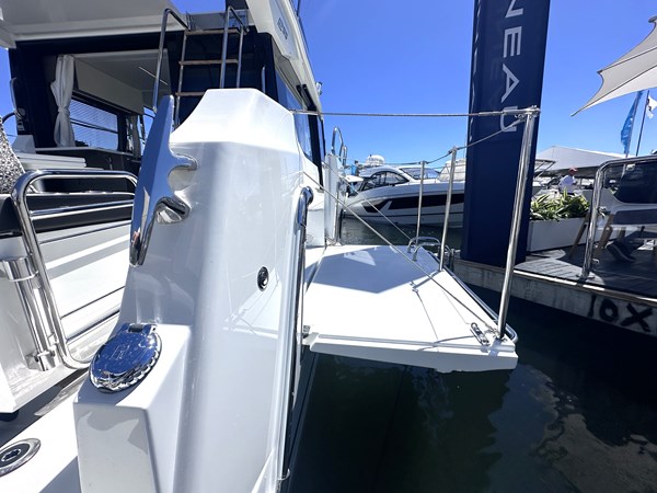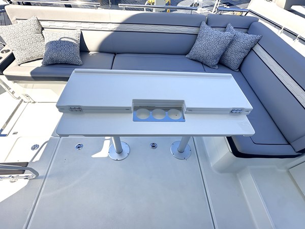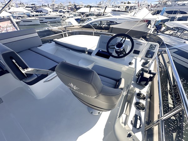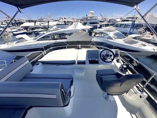 The 2025 Jeanneau NC1295 Fly is a luxurious 41-foot flybridge cruiser designed for extended family cruising and entertaining in comfort. It boasts a spacious layout with three private cabins: a forward master suite with a queen-sized berth and en suite head, and two guest cabins—each with twin beds that can convert into doubles—sharing a second head with a separate shower. The salon features an asymmetrical design, maximizing space with a U-shaped dinette and an aft galley that opens to the cockpit via sliding and hinged doors, facilitating seamless indoor-outdoor living. The expansive flybridge offers panoramic views, a helm station, and ample seating, making it ideal for cruising and socializing. Powered by triple Mercury 300XXL w/Joystick CF outboard engines. Additional features include a fold-down swim terrace for easy water access, recessed side decks for safe movement, and extensive storage throughout. With its blend of elegance, functionality, and performance, the NC1295 Fly is a standout choice for those seeking a versatile and comfortable cruiser for both day trips and extended voyages.