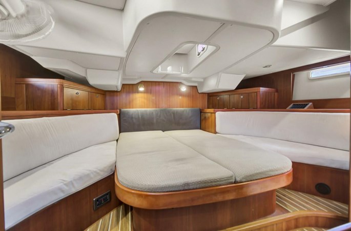 2007 Southerly 42 RST featuring three cabins and two heads, a variable draft swing keel, twin rudders/wheels, a raised salon and nav, and a large aft cabin. The Southerly 42 RST was designed by Rob Humphreys and built to cross oceans by Northshore Yachts in England. It boasts an impressive sail plan, for powerful windward performance and a robust swing keel, giving the freedom and versatility to sail in almost any waters. With the keel lowered, the variable draft of 8′ 11″ makes for fast, serious blue water cruising. The keel can be raised at the touch of a button to give a shallow draft of just 2′ 9″ – perfect for shallow water sailing and exploring coastlines.