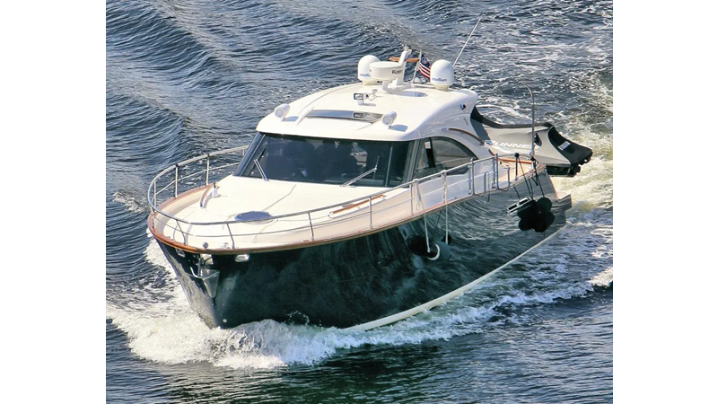 There’s plenty of room for you and your guests to dine, socialize and sunbathe throughout this yacht. The spacious cockpit features twin chairs that convert to chaise lounges, an L-shaped settee to port and a Hi-Lo table for al-fresco dining. The galley is located in the cockpit and includes a wet bar, refrigerator and cooktop making entertaining a breeze. The foredeck sunpad is large enough for two or more to relax or catch some rays.