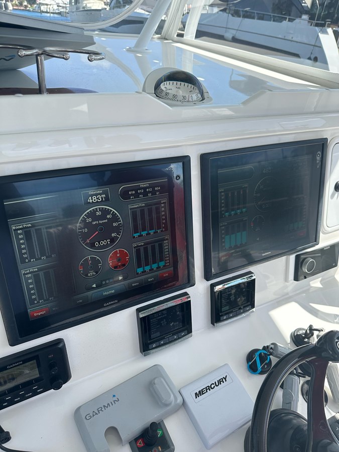 2016 Invincible with Quad Mercury Verados @ 400hp each. Two of the engines were replaced and repowered in 2019 so only 5 hours, the other two have 550 hours.